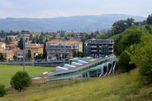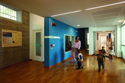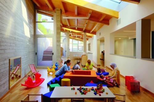 ccd studio設(shè)計(jì)的位于意大利維尼奧拉的Barbapapà幼兒園,是一項(xiàng)舉辦的設(shè)計(jì)競(jìng)賽。該幼兒園位于城市開發(fā)區(qū)的邊緣地帶的山坡之上,離城市歷史中心并不太遠(yuǎn),它可以容納60個(gè)兒童,由4間教室組成。工程的目標(biāo)是達(dá)到可持續(xù)性的要求,這點(diǎn)從建筑的各個(gè)方面都可以體現(xiàn)出來,并且建筑本身也將這種可持續(xù)性的價(jià)值傳遞給了孩子們。
