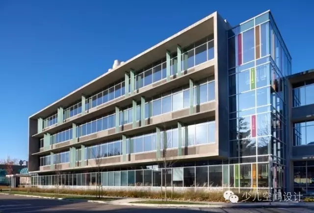 這是一個(gè)擴(kuò)建項(xiàng)目,新舊元素被整合,并裝點(diǎn)上一致,跳躍的彩色玻璃達(dá)到統(tǒng)一。與以往的安裝方式不同,有一部分彩色玻璃側(cè)安在墻上,就像樓房上的豎向廣告牌一樣。玻璃在與陽光的舞蹈中,給建筑帶來變化,有趣的色彩板塊。兒童與家庭研究中心位于兒童與婦女健康研究中心的46英畝校園內(nèi)。各方面皆是加拿大西部規(guī)模最大研究院,研究院同時(shí)還涉足其它臨床研究領(lǐng)域,具有動(dòng)物保健設(shè)施,商店設(shè)施,教育中心等其它功能。該項(xiàng)目是一個(gè)擴(kuò)建,與原有建筑整合后,面積達(dá)到了11924平方米。