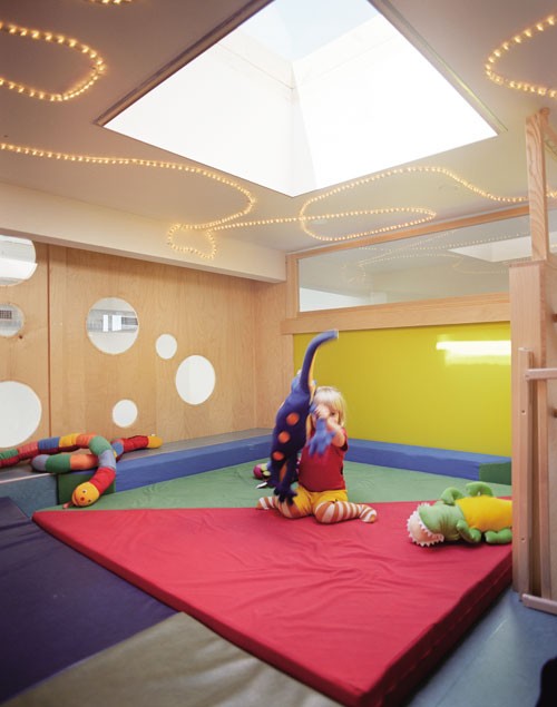 全世界大多數學前教育場所都不提倡孩子們“自由活動”,限制孩子自由漫步、發言和探索,甚至連單純的沉思也不允許。而這些重重地限制,在“保護”孩子的同時,也阻礙了他們對于世界的探究。因此如何在保證安全的情況下創造出符合孩子性情的專屬空間,是設計的核心。