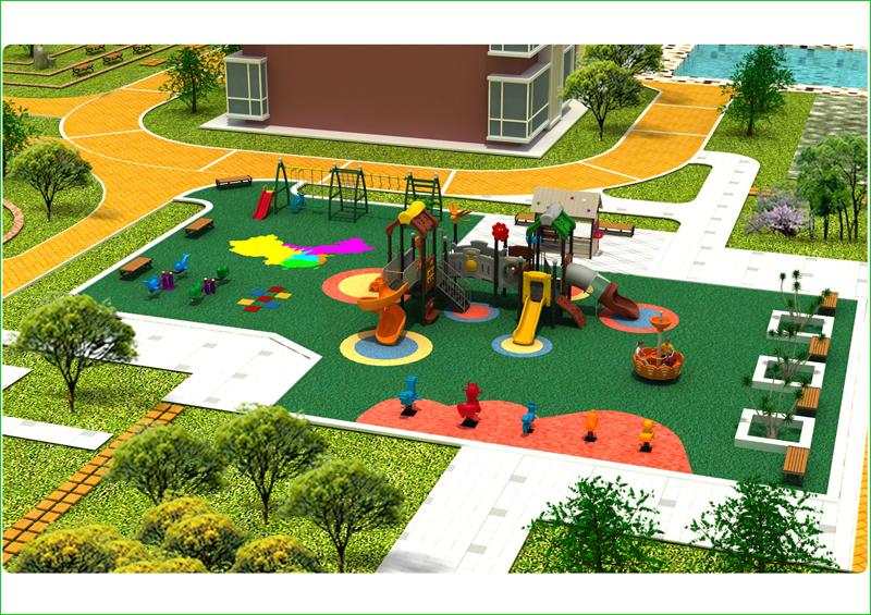 另一方面,戶外場地也可分為三部分:公共活動區(qū)、幼兒活動區(qū)、綠化區(qū)。公共活動區(qū)主要包括幼兒園進門處、道路、宣傳展示區(qū)、教師車棚等;幼兒活動區(qū)包括操場、大型玩具區(qū)、沙池、種殖區(qū)等。綠化區(qū)包括圍墻內(nèi)外的平面綠化區(qū)以及樓體、圍墻上面的立體綠化區(qū)。 幼兒園進出路線和出入口也要劃分主次,如后勤服務(wù)走專用通道。