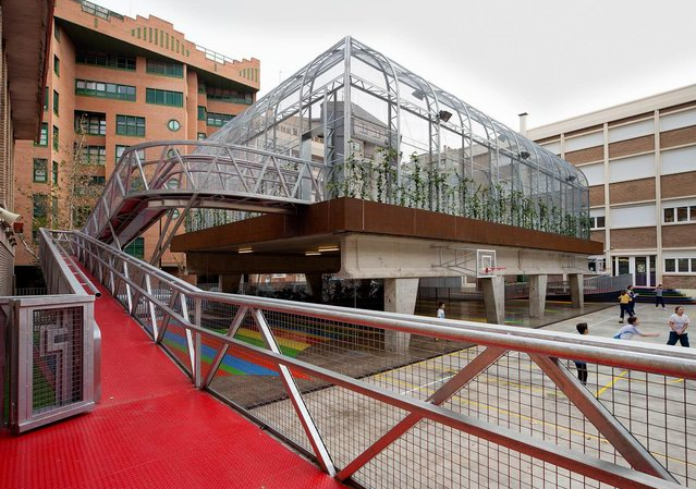 位于西班牙的Lasalle Franciscanas學(xué)校有一個(gè)神奇的“空中操場”。