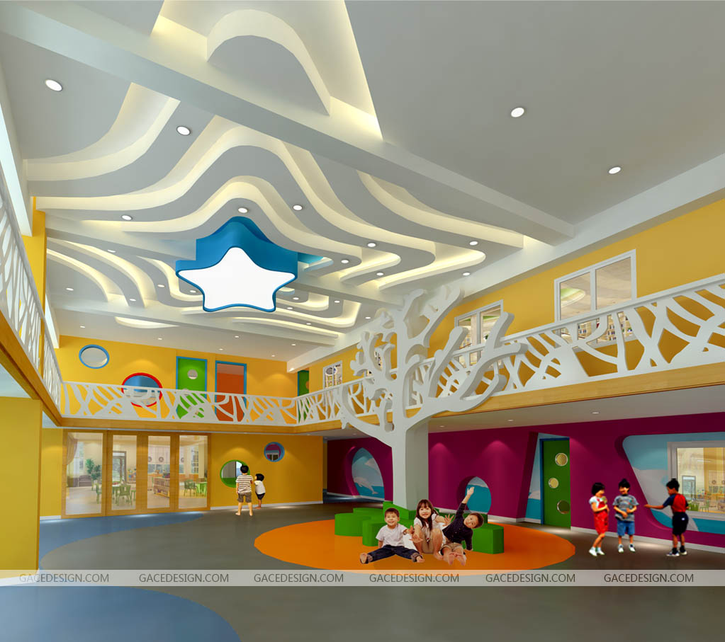 傳統(tǒng)的幼兒園給人們的第一印象就是五顏六色的墻面,墻上貼滿了格式各樣的一些剪紙卡通形象,室內各種不同的兒童元素搭配在一起,覺得這樣的環(huán)境適合孩子們,孩子們就是喜歡這樣五顏六色空間,但實際上孩子們非常聰明,孩子們在成長環(huán)境中一個環(huán)境的好壞會影響孩子們的判斷,所以幼兒園室內設計往往需要采用不同的顏色去合理的搭配來達到最好的效果。