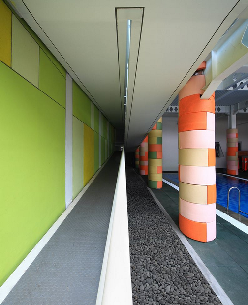 這個(gè)建筑的設(shè)計(jì)處處為孩子們的安全著想。園長的辦公室專門設(shè)置在一樓,臨近操場和游泳池,這樣可以方便園長監(jiān)控孩子們活動(dòng)時(shí)的安全。操場的地面采用了1.5厘米厚的橡膠材質(zhì)做地板,游泳池被欄桿圍了起來,以防止孩子們發(fā)生安全事故。(幼兒園室內(nèi)設(shè)計(jì))