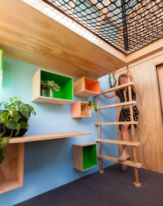 設計師門在設計之初就是為了激發孩子們的想象力,并且這個小木屋能夠讓孩子們感受到正在野外參加冒險的體驗。有趣的是這個小木屋的建造全部是采用了花園里最常見的一些材料,小木屋設有各種特色的通道讓木屋變得生動,設計師們鼓勵孩子們通過外面的特色通道進入木屋室內,而室內則是更加的有趣。(幼兒園設計