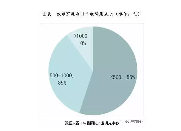 中國目前家庭教育消費(fèi)的年均增速為20%,育兒支出已占中國家庭平均收入的23%。教育支出在中國家庭已經(jīng)超過其他生活費(fèi)用,成為僅次于食物的第二大日常支出。56.5%的家長(zhǎng)把孩子教育投資列在首位,35%的城市家庭每月在孩子身上的早期教育費(fèi)用支出在500-1000元,10%的家庭每月用于孩子的早期教育費(fèi)用支出高于1000元/月。龐大的早教需求,誘人的早教市場(chǎng),致使早教行業(yè)應(yīng)運(yùn)而生,早教機(jī)構(gòu)風(fēng)生水起。
