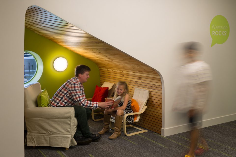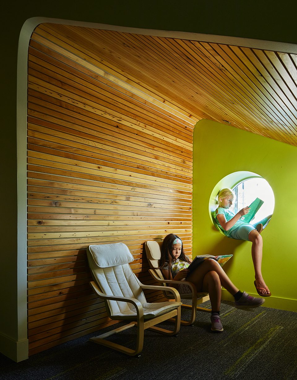 ▼嵌入教室墻壁的創意空間為自主交流和非正式的小組教學提供了靈活的場所