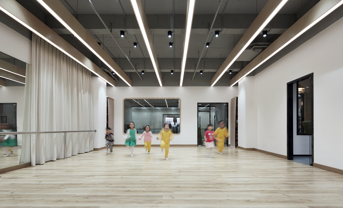 燈光。燈光是烘托氛圍的一個重要元素,親子園的燈光一定要暖色的燈光,前臺主要用一些射燈,接待室可以是吊燈,走廊、教室、老師辦公室可以用普通的照明燈管(三欄隔柵燈)。亮度太亮或太暗,都會對寶寶的眼睛不好。