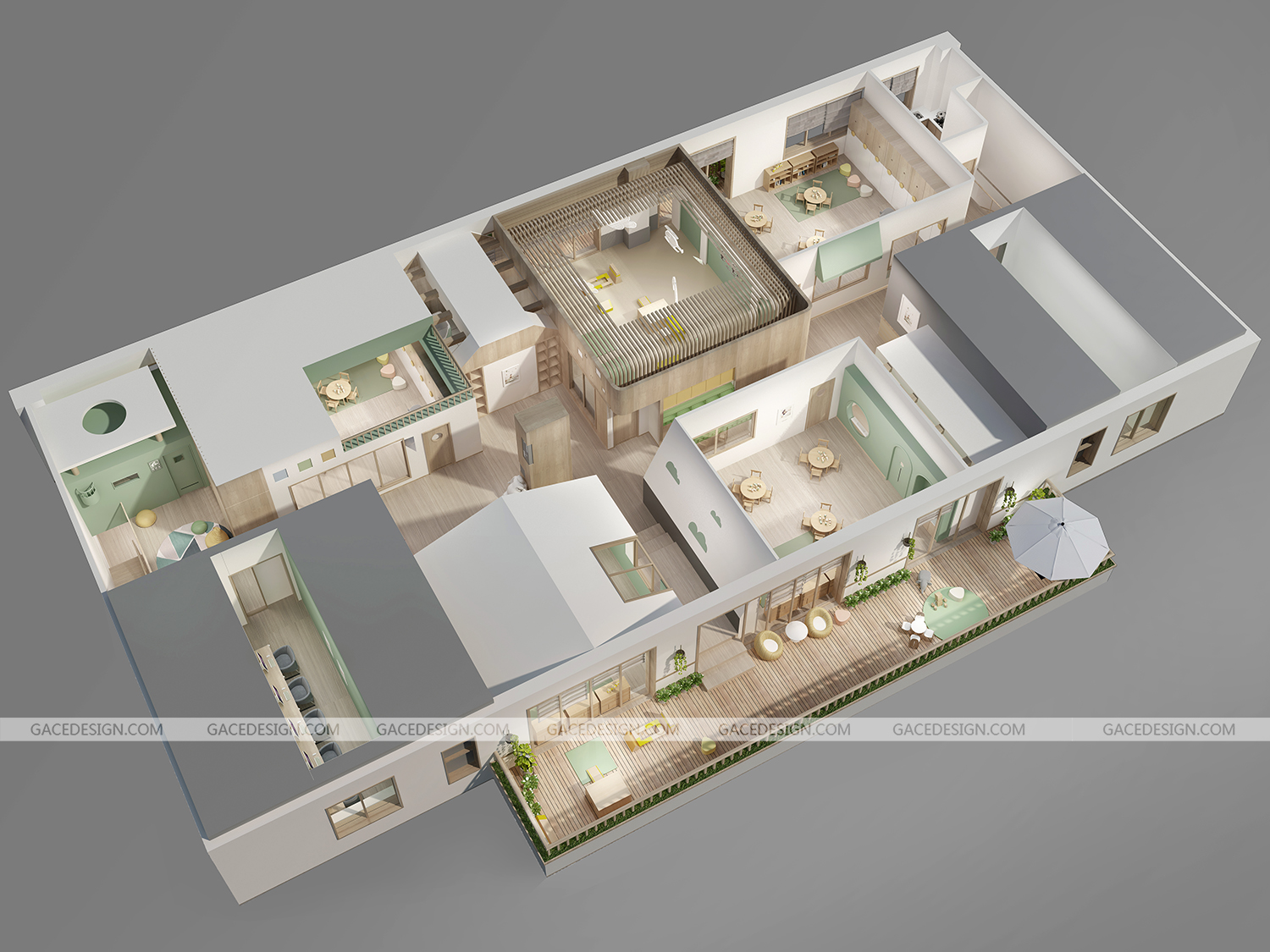 ① 輕快、活潑并有兒童建筑的特點(diǎn),是幼兒園開(kāi)展活動(dòng)的最佳場(chǎng)所,也是孩子們自由發(fā)展的快樂(lè)天堂。