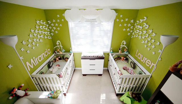 采用綠色作為墻面設計,8平米不到的空間,放置兩張baby床,中間放個床頭柜作為收納。狹小的空間瞬間看起來落落大方。